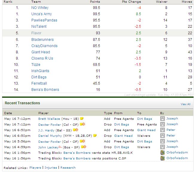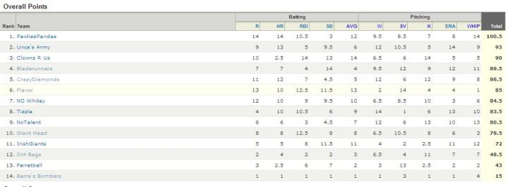 The Flap Fantasy Baseball Standings!!!!!