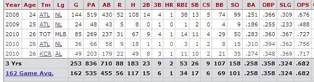 Blanco is interesting. He’s fiddled around in the minors since 2002 but he did play for Atlanta and KC for parts of 2008 and 2010. Here are his major league stats:
