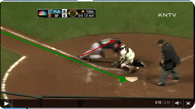 I was disappointed, along with probably most of you, to see that Joe Torre has taken back his job working as Executive VP of Baseball Operations for major league baseball. That job lay dormant and unfilled while Torre tried unsuccessfully to buy the Dodgers. It’s a super critical job that as far as I can tell has no duties and no expectations and a fat salary. The only time I’ve EVER heard the job referenced before was when we got to listen to Torre’s idiotic response for why he wouldn’t even pass the possibility of a home plate collision rule change on to the rules committee. That smug-fuck could barely contain his derision of Bochy who had been logically pushing for at least a discussion of a rule change. My #1 Pacific Northwest Flapper “Bird Dog” sent me this photo. I’ve posted it before but it is much more dramatic when you add in the lines. Posey was blocking the plate? My ass: