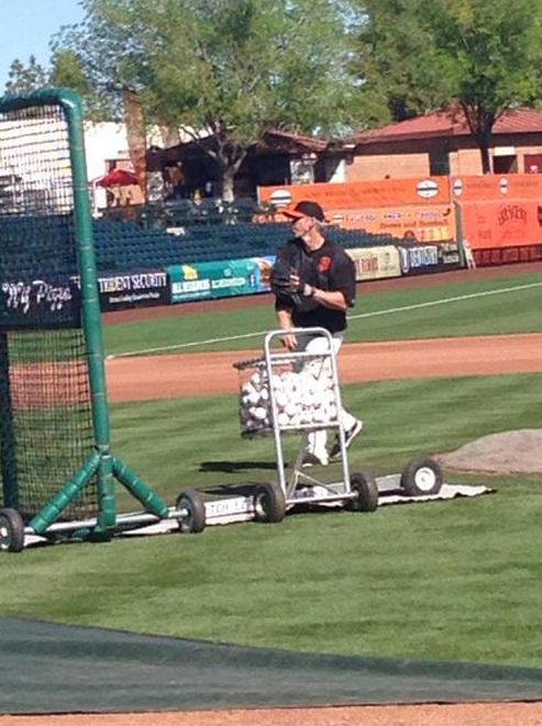 Eli Whiteside has lived the life, hasn’t he? His peripheral major league career has now mercifully ended and yet he’s still in the game. As many of you know, he’s the bullpen catcher for the Giants now. Here he is displaying his multi-layered skills by throwing BP today:
