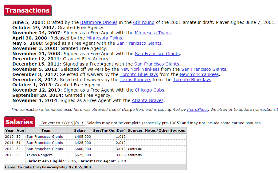 Clearly, my approach was incorrect. Whether Sabean did this on purpose or not, we’ll never know. But he must love the fact that he gets the best years of the arms of his pitchers while almost never having to go pay a pitcher big bucks to come to SF and break down……