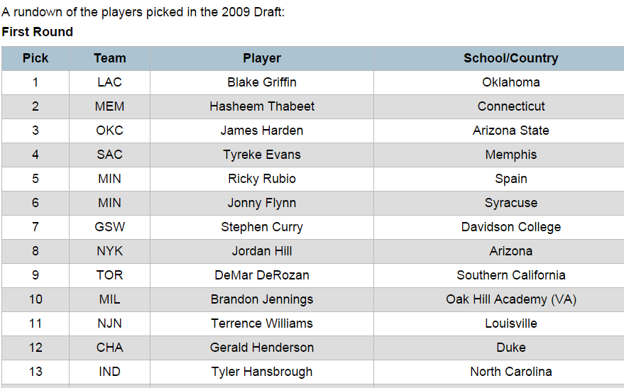 To celebrate Steph’s MVP win I thought it would be fun to go back and look over the players picked ahead of him. Favorite thing: Minnesota took not one but TWO point guards in front of him. Hilarious.