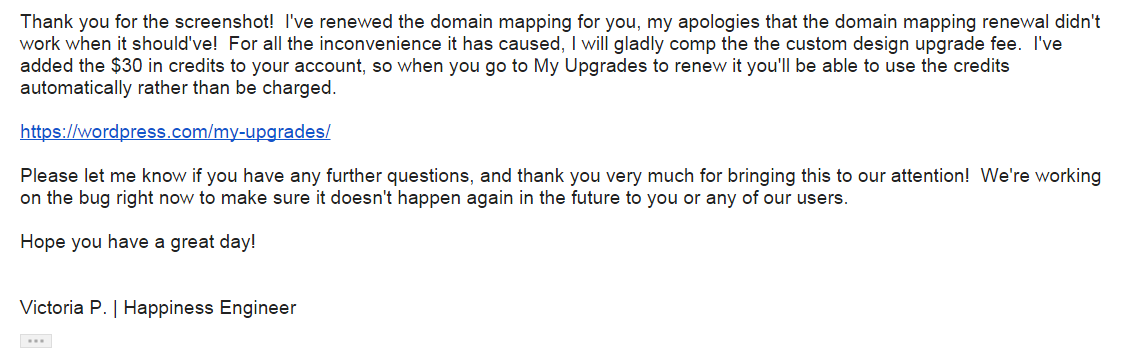 There is still a *custom design* fee that I need to renew but I’m not an idiot. I’m not paying for services and having them still tell me I owe them for services.