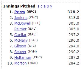 I picked a random year (1970) and here were the top 10 innings leaders: