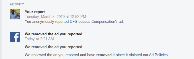 This is not a political comment but it should make you think. I reported a false/misleading ad to Facebook in March of 2019. Yesterday, they finally got around to removing it.