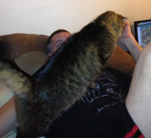 And here he is last night after I took the sensor off because it stopped working. Happy kitty.