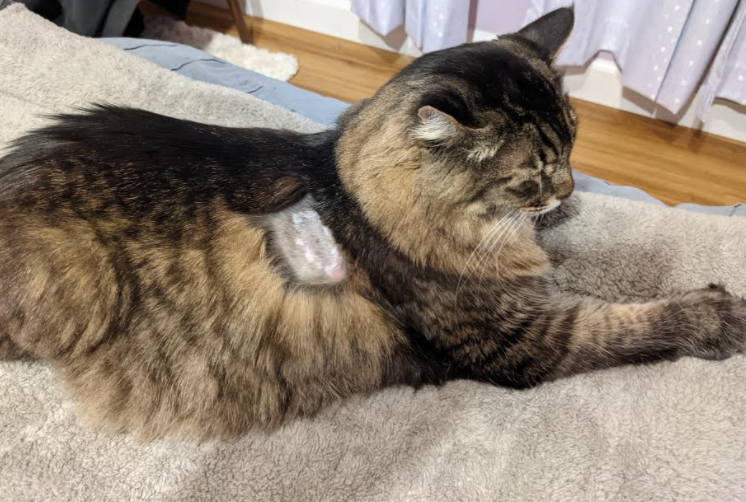 Here’s a pic of Carson the day he got home from the vet with his sensor on. Not a happy kitty.