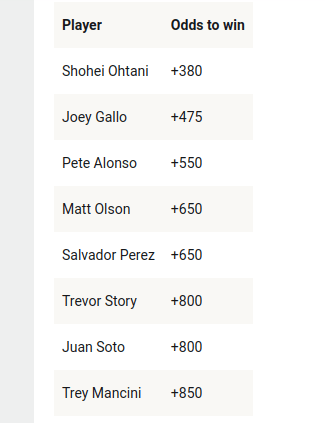 I’m excited for this Bomb Derby. I know they use juiced balls, I don’t care. Ohtani is a deserving favorite. But I’m surprise Perez is lower odds than Soto. Mancini winning, while improbable, would be the best Bomb Derby story of all time.