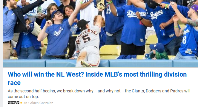 I’m not going to read the article. But it’s nice to see the national scribes recognizing that the Giants are truly on top of the NL West.