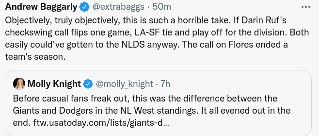 For those who are incomprehensibly saying this *evened things out* after the Ruf at bat in August: Baggs said it best…..