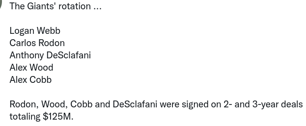 What I liked about the off season was….they did nothing. The single worst thing a team can do is sign a big bonanza free agent. It’s lazy GMing. Makes the owner and the fans feel good in the moment but those guys rarely pay off (at least compared to what they get paid). Let’s see what Farhan does with the mid level guys. I’m expecting a lot of action in this upcoming short free agent window.