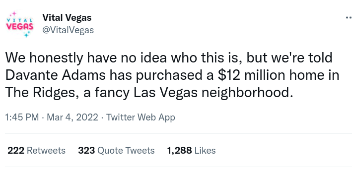I follow this random vegas content guy on twitter just cause I like the stuff he posts and I like to keep a watchful eye on the happenings in that quaint little town. So on March 4th he tweeted this (typical of the stuff he tweets):