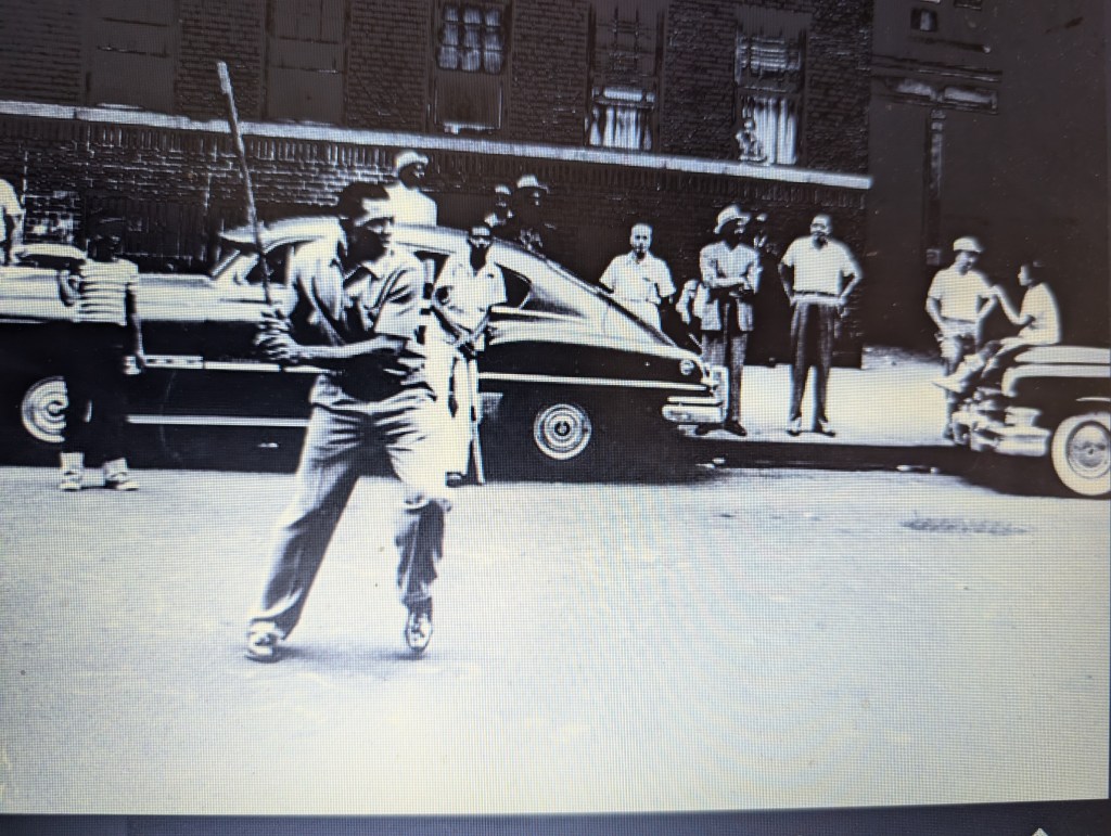 It reminds me of being a kid and playing in the street even though I grew up in a different looking neighborhood. I could stare at this picture for a LONG time and always see something different, or have a question or thoughts. Like, what are those 2 douchbags on the right side talking about that is so important they are MISSING that man swing a stick? It would be so fun to take a time machine back to that moment and just….watch. There are lot of things I’d like a time machine for.